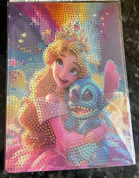 “10.912 cristais colados um a um e está pronta a minha primeira tela!